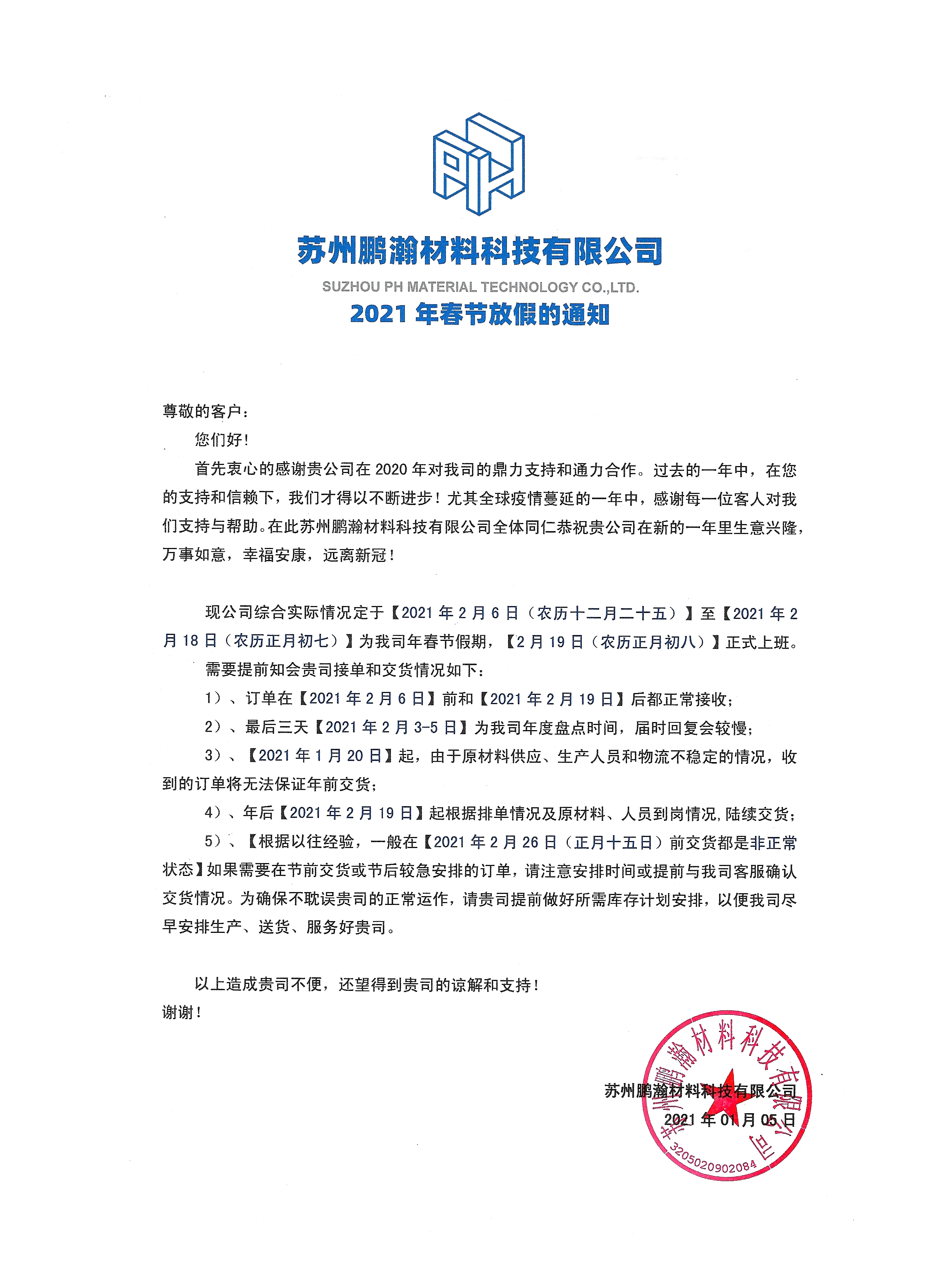 2021春节放假通知